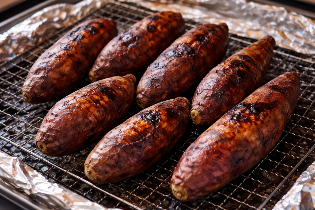 じっくりと1時間以上かけて焼き上げられた芋は、皮まで美味しく食べられるほど柔らかく、濃厚な甘みが特徴です。