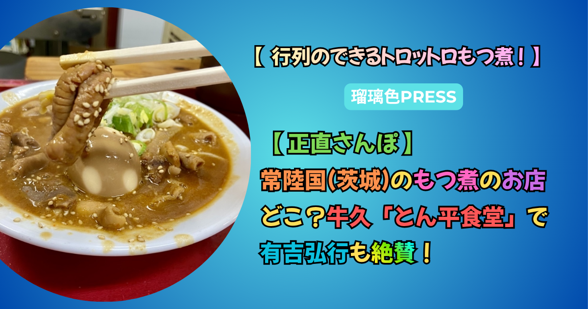 【正直さんぽ】常陸国(茨城)のもつ煮のお店どこ?牛久「とん平食堂」で有吉弘行も絶賛!